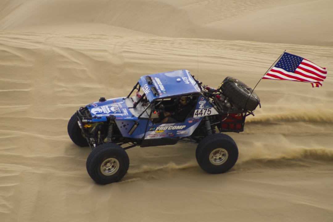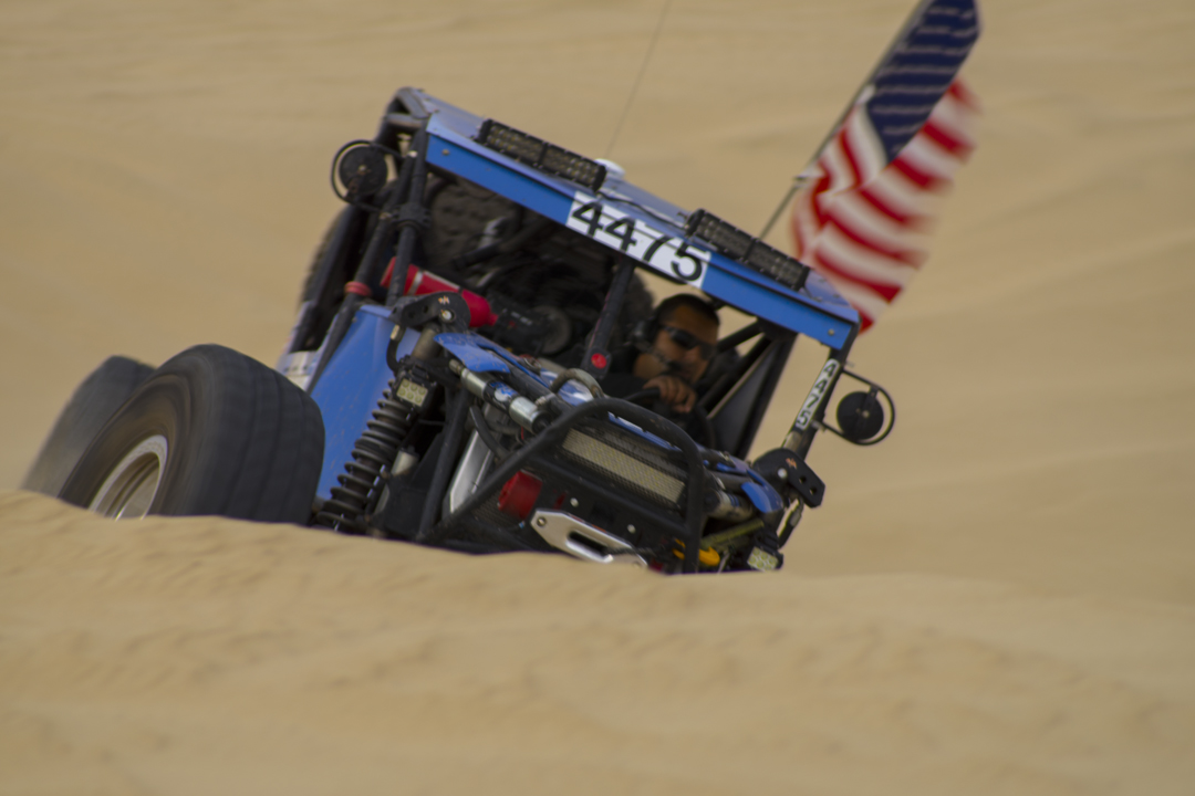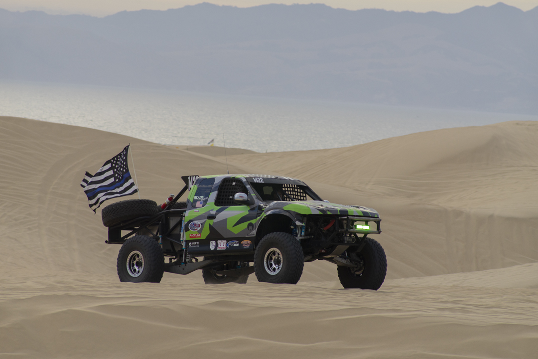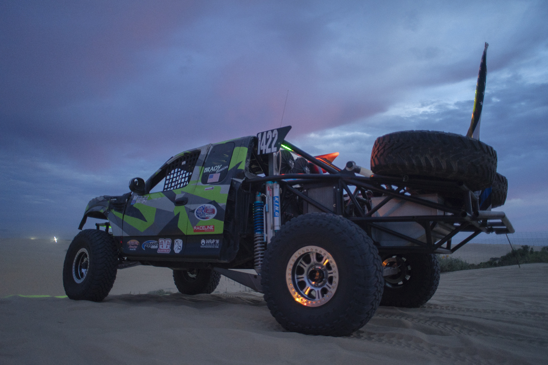 Eddie was flying around looking great, when his car started to miss a little bit and the dreaded smell of raw fuel starting wafting into his cab. Not wanting to turn into a crispy hot dog, we made sure he killed all electrical and began the trouble shooting. Although he was able to get the car to sputter to life a few times, we noticed that raw fuel was weeping around the valve cover gasket and through the exhaust collector as well. With a few more races left to go this season, Eddie opted for a strap off the sand highway and back to the trailer. Even with multiple fire extinguishers on hand, you can never be too cautious about fire safety, it’s one of our biggest fears. Once he got home, a faulty injector was found to be the culprit; after swapping them out and changing the oil he’s ready for the next race in the Ultra4 series. In the days of fuel injection, it’s almost taken for granted that engines seldom flood with fuel; however, best practice from the days of yore is that any engine that’s been flooded or had the cylinders fuel washed should have the oil changed out as soon as possible. Fuel can wreak havoc on bearing surfaces and seals, and any carbon buildup that might have been dissolved is now flowing around in your engine oil, which is far from ideal.