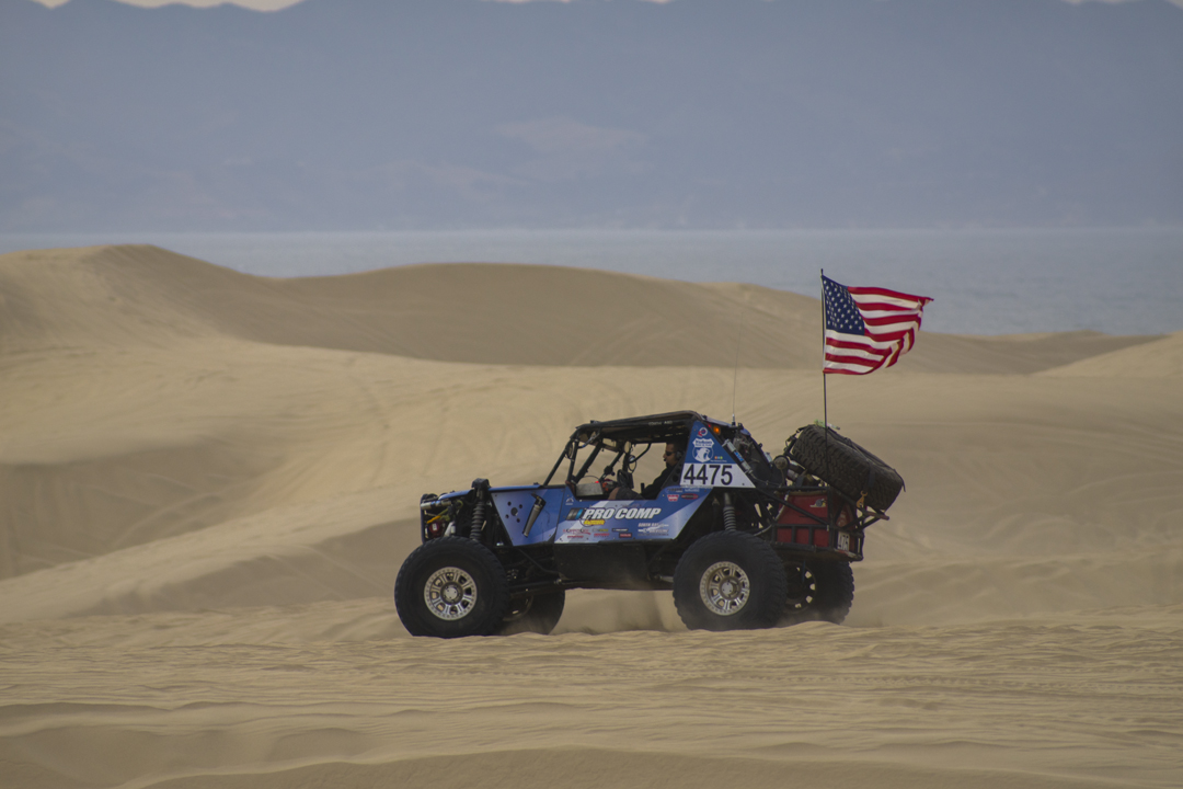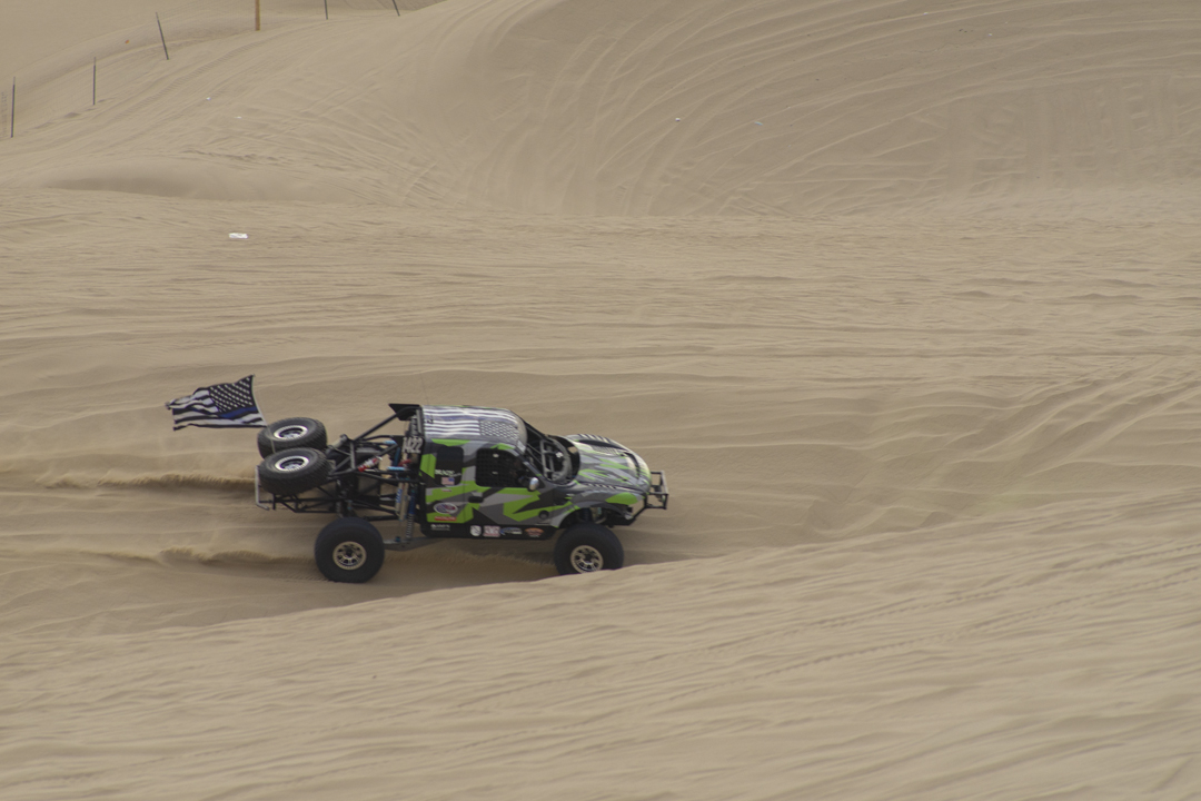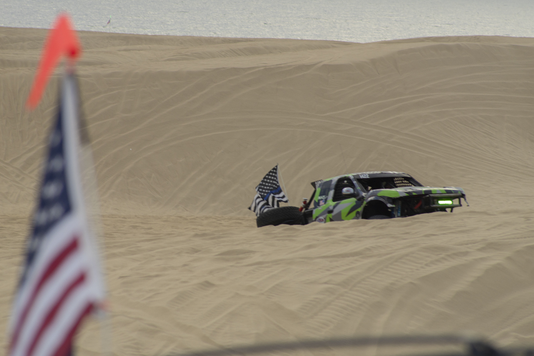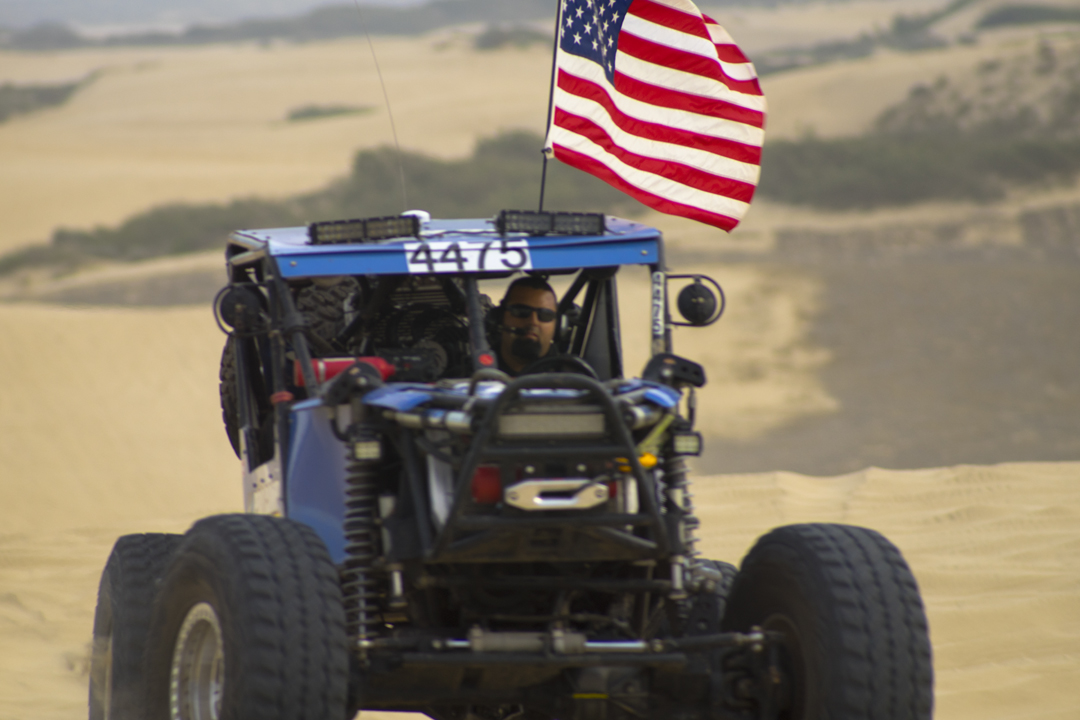 Our sales manager already had his 4400 car all setup on the trailer, having recently returned from a race in Oklahoma, so getting his toy out to the sand was no problem at all. His friend Kenny had brought out his 1400 class prerunner to the beach for the July 4th holiday as well, so it was shaping up to be a good trip. We all met up on the beach, aired down, setup the safety flags (they are required on the sand highway and in the dunes), and headed out to the sand highway in search of bowls to shred. It didn’t take long before both Eddie and Kenny were flying around, each finding the different lines that their race car could handle.