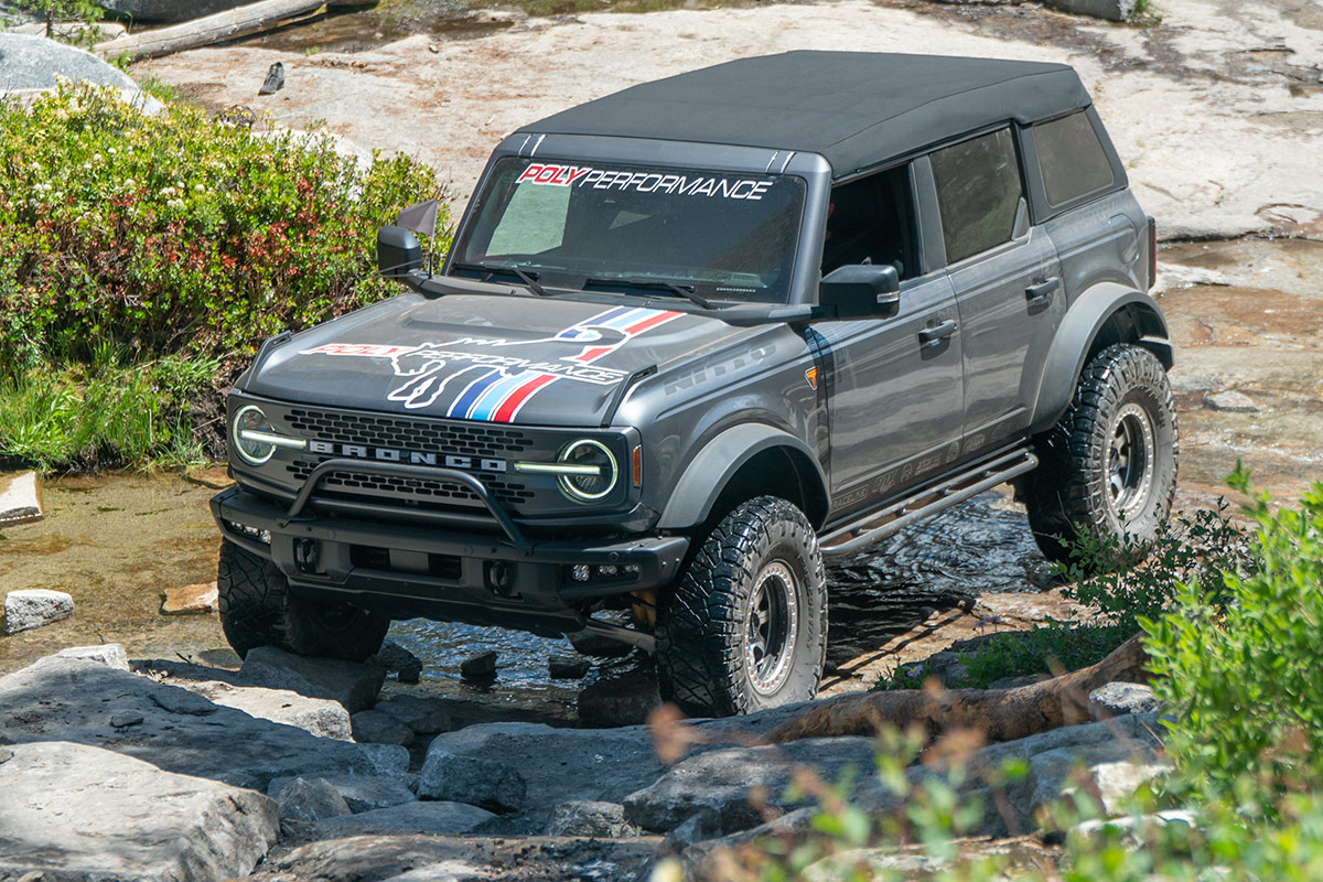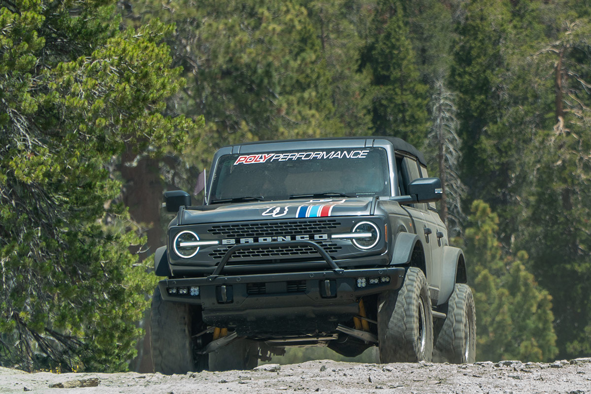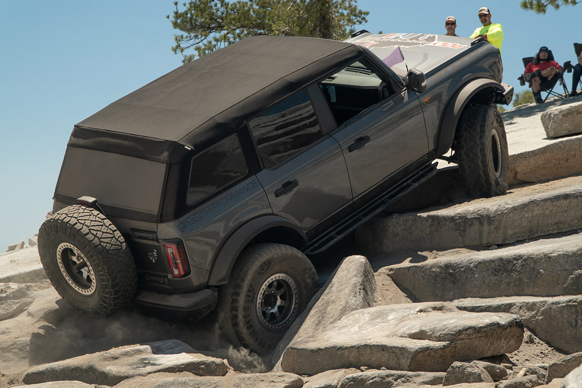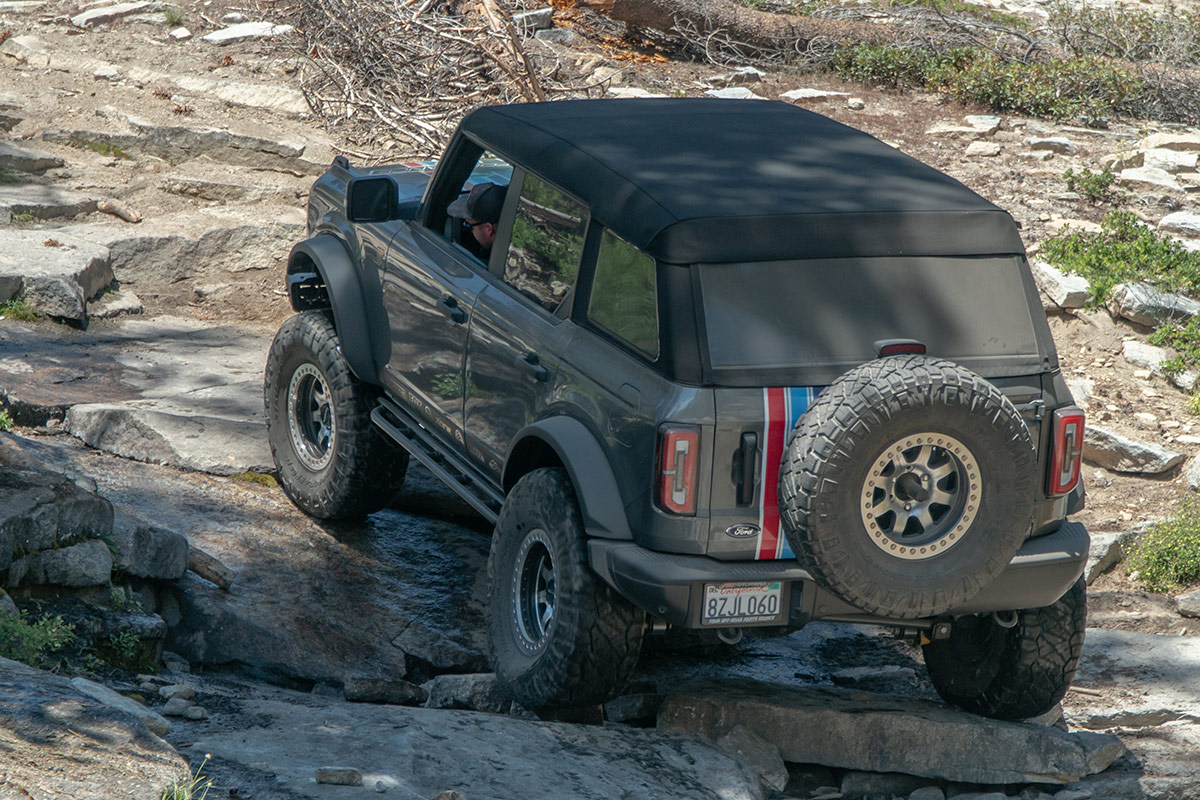 The next morning Just manned our show booth as the majority of day run participants were staging in line after passing tech. It is always a pleasure getting to meet customer’s in person and seeing parts we have sold out in the wild. As the event runs finally left the staging area and the crowd thinned we decided it was time to get out on the trail ourselves. After some prep we had the Bronco and Buggy ready to wheel and headed out. We stopped along the way to enjoy some of the beautiful scenery Bald Mountain has to offer; such as cold mountain creeks, steep granite climbs, and windy forest roads through groves of trees. Since we were comfortable with the Broncos abilities we decided to test its limits on an Obstacle known as Posi Hill. We made the far left line fairly easily and decided to push it on the middle line. Crawl control paired with 37” tires made it pretty easy to climb the line. The crowd was really impressed that the Bronco was able to make it up a line that was typically reserved for more built rock crawlers.